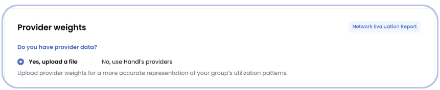 Network Evaluation accepts uploads by NPI or TIN, and Disruption Analysis accepts NPI. Iris will use these weights to generate Network Evaluation and Disruption Analysis reports tailored to your client's actual provider usage, not market-level benchmarks. This includes full support across all three Network Evaluation charts, and you can include provider names for easy identification.